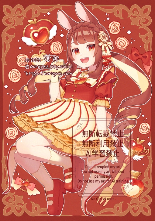 薄切りりんごを使った蓋をしないタイプのアップルパイをイメージしたウサギの魔法少女です。