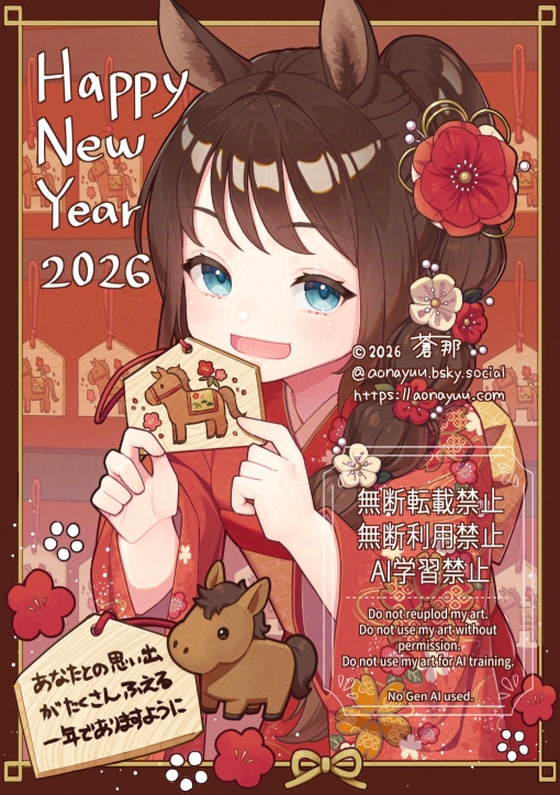 年賀状イラストで2026年は午年なので、馬にちなんで絵馬をテーマにしました。