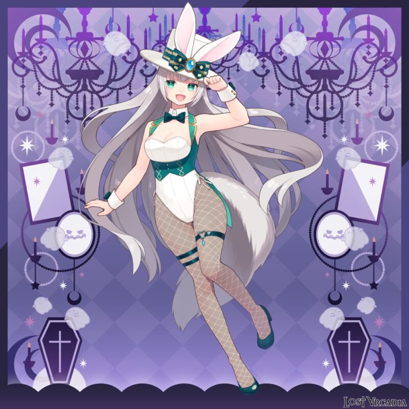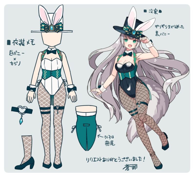 カジノ店員の白バニー衣装です。おまけの没案は最後まで迷った黒バニーの差分ラフになります。
