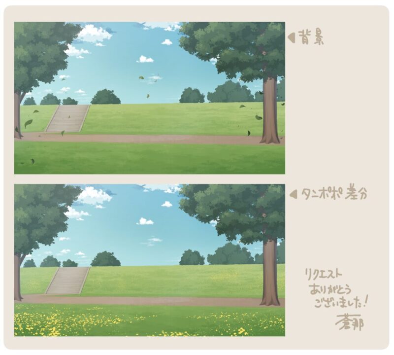 おまけでタンポポが咲いている風の差分も作ってみました。